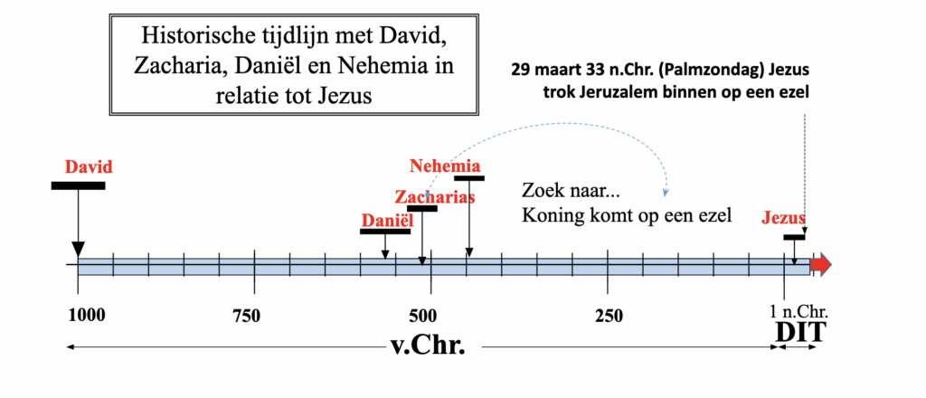 Eeuwen eerder had de profeet Daniël geprofeteerd dat Christus 483 jaar na het besluit om Jeruzalem te herbouwen zou komen. We hadden Daniëls verwachte jaar berekend op 33 n.Chr. – het jaar dat Jezus Jeruzalem op een ezel binnentrok. Het voorspellen van het jaar van de intocht, honderden jaren voordat het plaatsvond, is verbazingwekkend, maar we kunnen zelfs zijn aankomst op die dag berekenen. (Lees dit eerst nog  eens door terwijl we verder bouwen).